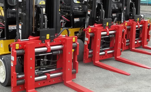 調(diào)距叉廣泛應(yīng)用于第三方物流。裝卸時搬運(yùn)各種托盤、盒子、籠子和空運(yùn)集裝箱,負(fù)載貨物的尺寸變化較大。叉車租賃車隊(duì)必須全天候進(jìn)行多種工況的應(yīng)用。